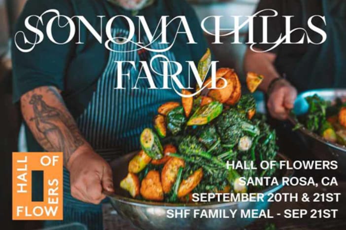A Taste of Sonoma County Family Meal at Hall of Flowers Market & Festival: Sonoma Hills Farm is excited to create an immersive food experience celebrating the intersection of chefs, Cannabis, and cuisine. Experience chef-driven demos and education from multiple James Beard Award nominees, Top Chef contestants, and Michelin Star winners. Elevate your Hall of Flowers Cannabis Market & Festival experience with a farm-to-table fried chicken dinner from Chef Telmo Faria of Sonoma Hills Farm and Uma Casa restaurant—served right in the heart of the expo! Skip the food truck lines and tuck into a nourishing three-course sit-down meal featuring farm-fresh vegetables and herbs.