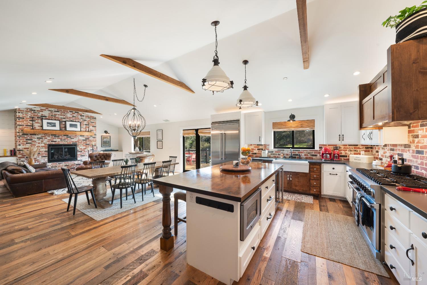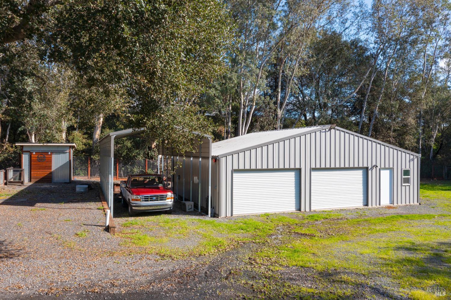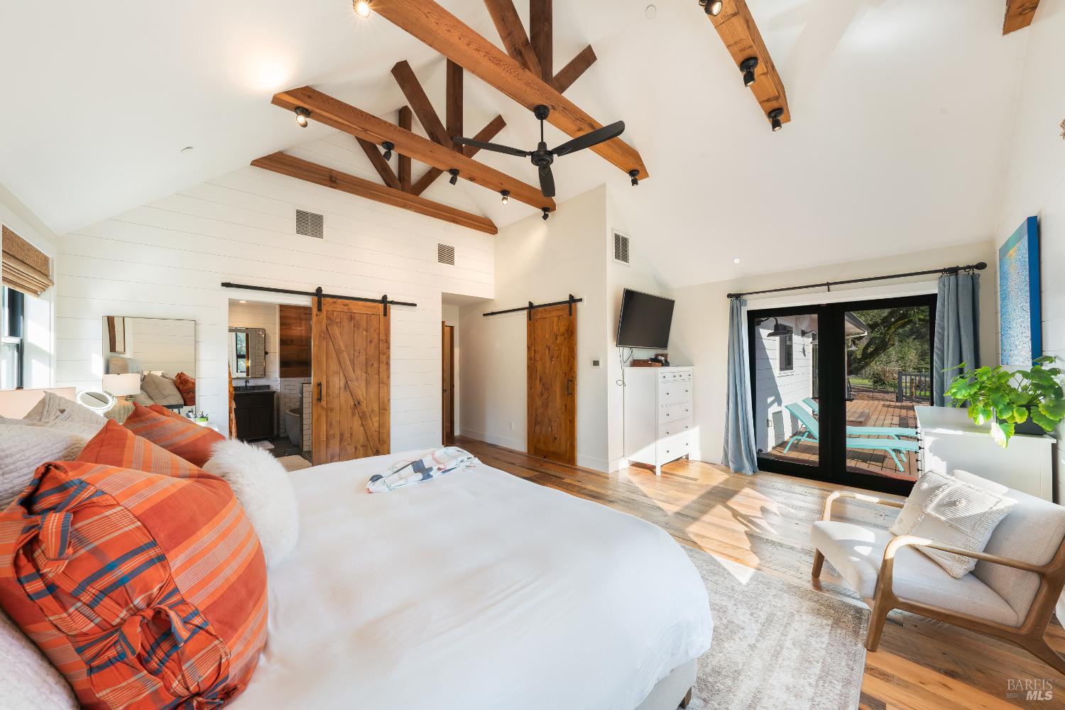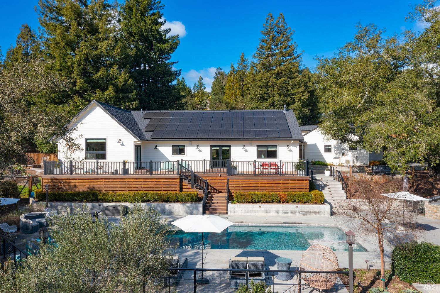 Nestled at the end of a cul-de-sac, this 1.5 +/- acres lot boasts a 3 bed/2 bath single-level farmhouse, a 1 bed/1 bath guesthouse, and a plethora of superb amenities. A comprehensive renovation in 2018 brought this once dated home up to a modern day aesthetic. The open floorplan is bathed in natural light and showcases designer accents and reclaimed barn wood floors throughout. The gourmet kitchen is a culinary enthusiast's dream, complete with Viking stainless steel appliances, quartz countertops, and a spacious center island. The backyard is the epitome of a private oasis, perfect for family gatherings. It features everything you could ever want to entertain; a pool, a hot tub, an outdoor kitchen, a cozy gas firepit, built-in surround sound, pickleball, a chicken coop, a kid's playhouse, garden beds, and a sports court. In addition to the impressive 2,400 sq ft main residence and the detached 800 sq ft guest cottage, there is generous 1,200-sq ft shop with attached covered RV parking. Ideally situated just minutes away from the Healdsburg Plaza, world-renowned wineries, fine dining establishments, and boutique shopping, this property offers the ultimate wine country living experience.