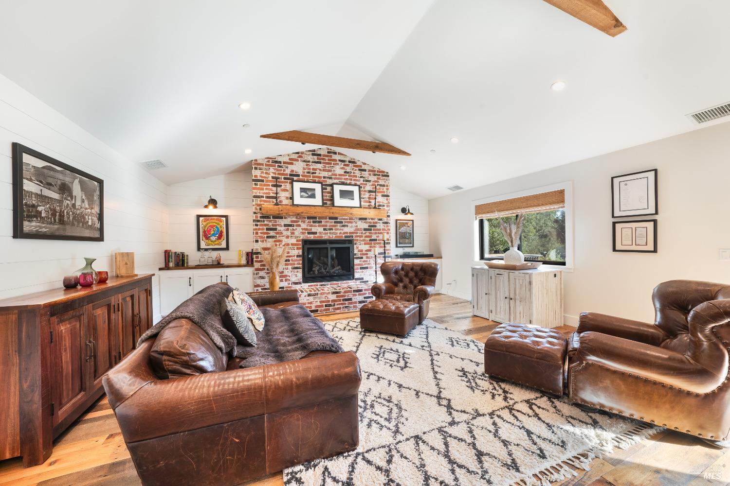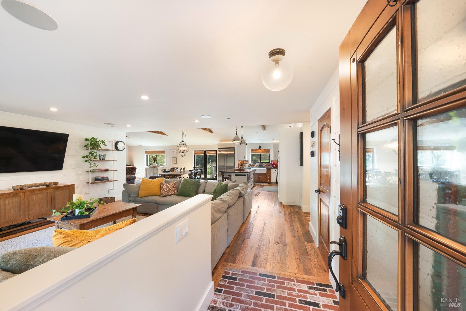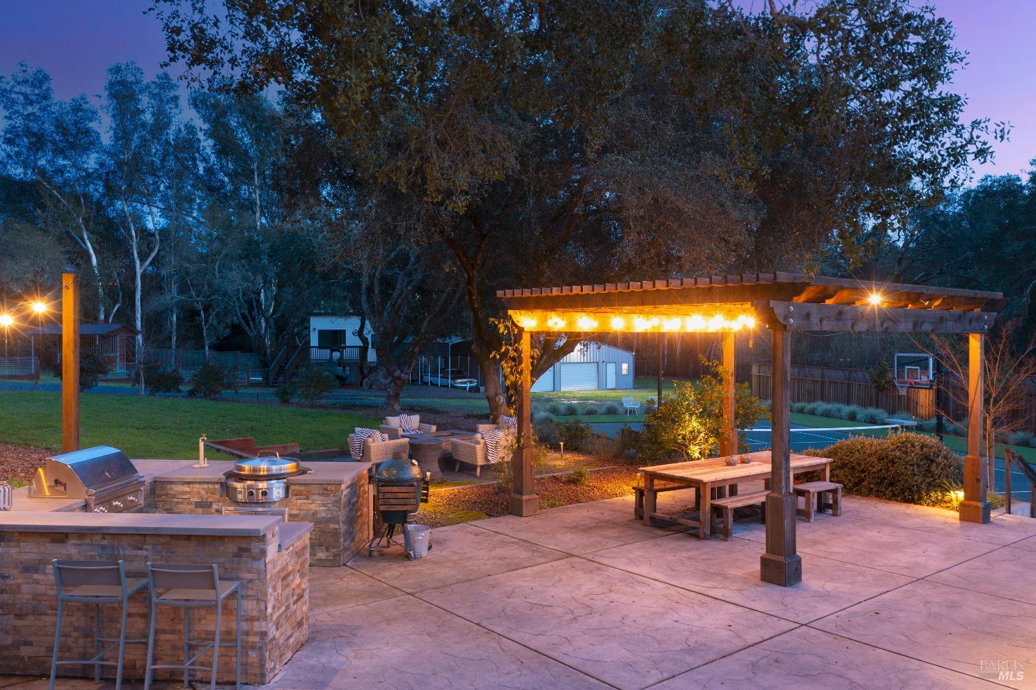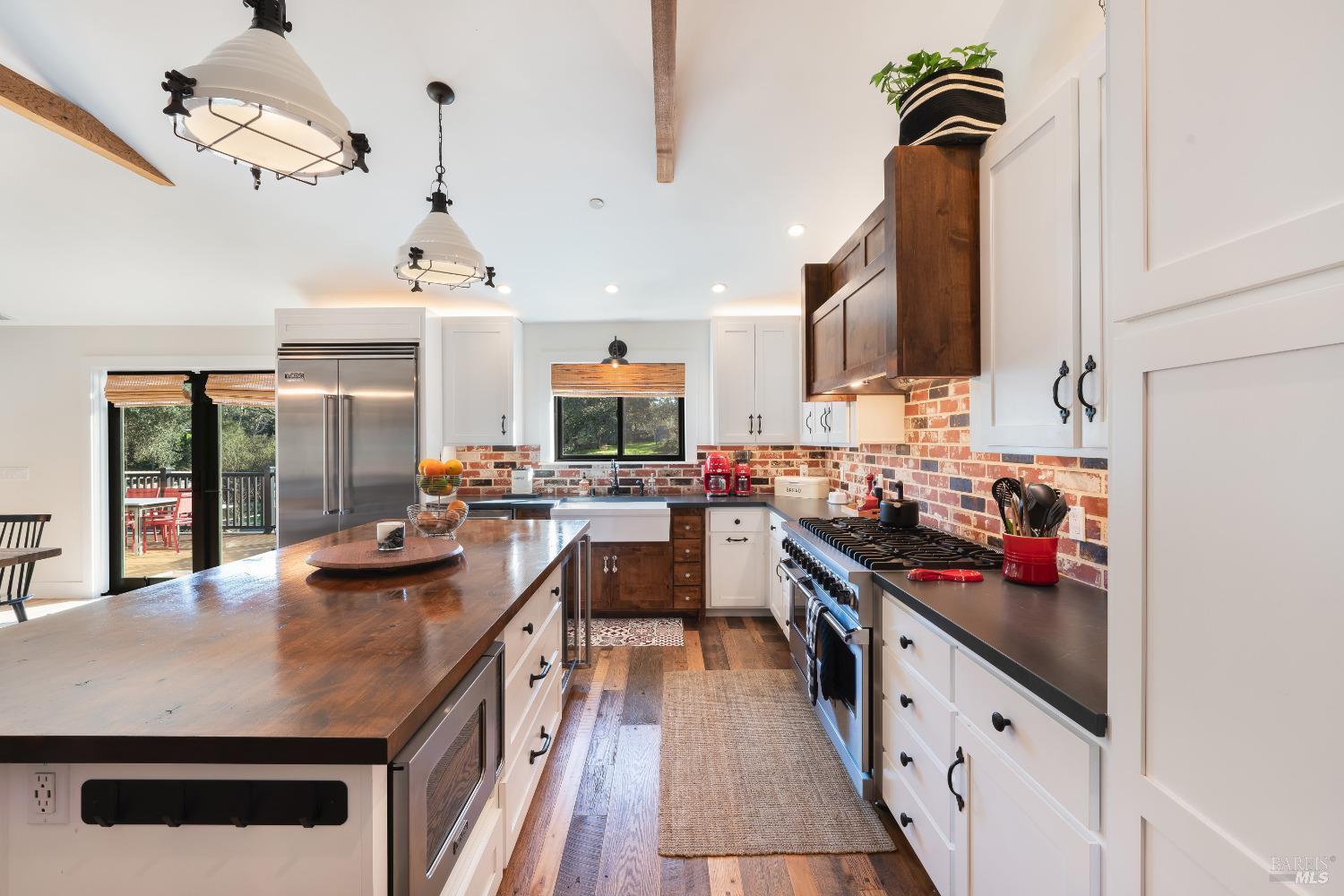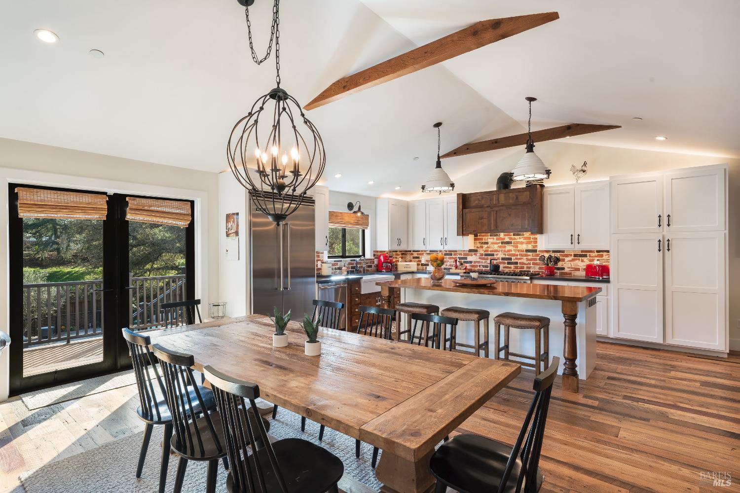 Nestled at the end of a cul-de-sac, this 1.5 +/- acres lot boasts a 3 bed/2 bath single-level farmhouse, a 1 bed/1 bath guesthouse, and a plethora of superb amenities. A comprehensive renovation in 2018 brought this once dated home up to a modern day aesthetic. The open floorplan is bathed in natural light and showcases designer accents and reclaimed barn wood floors throughout. The gourmet kitchen is a culinary enthusiast's dream, complete with Viking stainless steel appliances, quartz countertops, and a spacious center island. The backyard is the epitome of a private oasis, perfect for family gatherings. It features everything you could ever want to entertain; a pool, a hot tub, an outdoor kitchen, a cozy gas firepit, built-in surround sound, pickleball, a chicken coop, a kid's playhouse, garden beds, and a sports court. In addition to the impressive 2,400 sq ft main residence and the detached 800 sq ft guest cottage, there is generous 1,200-sq ft shop with attached covered RV parking. Ideally situated just minutes away from the Healdsburg Plaza, world-renowned wineries, fine dining establishments, and boutique shopping, this property offers the ultimate wine country living experience.