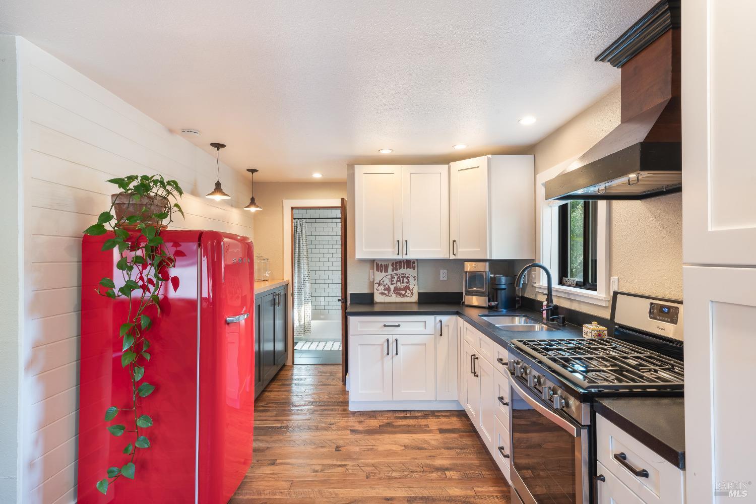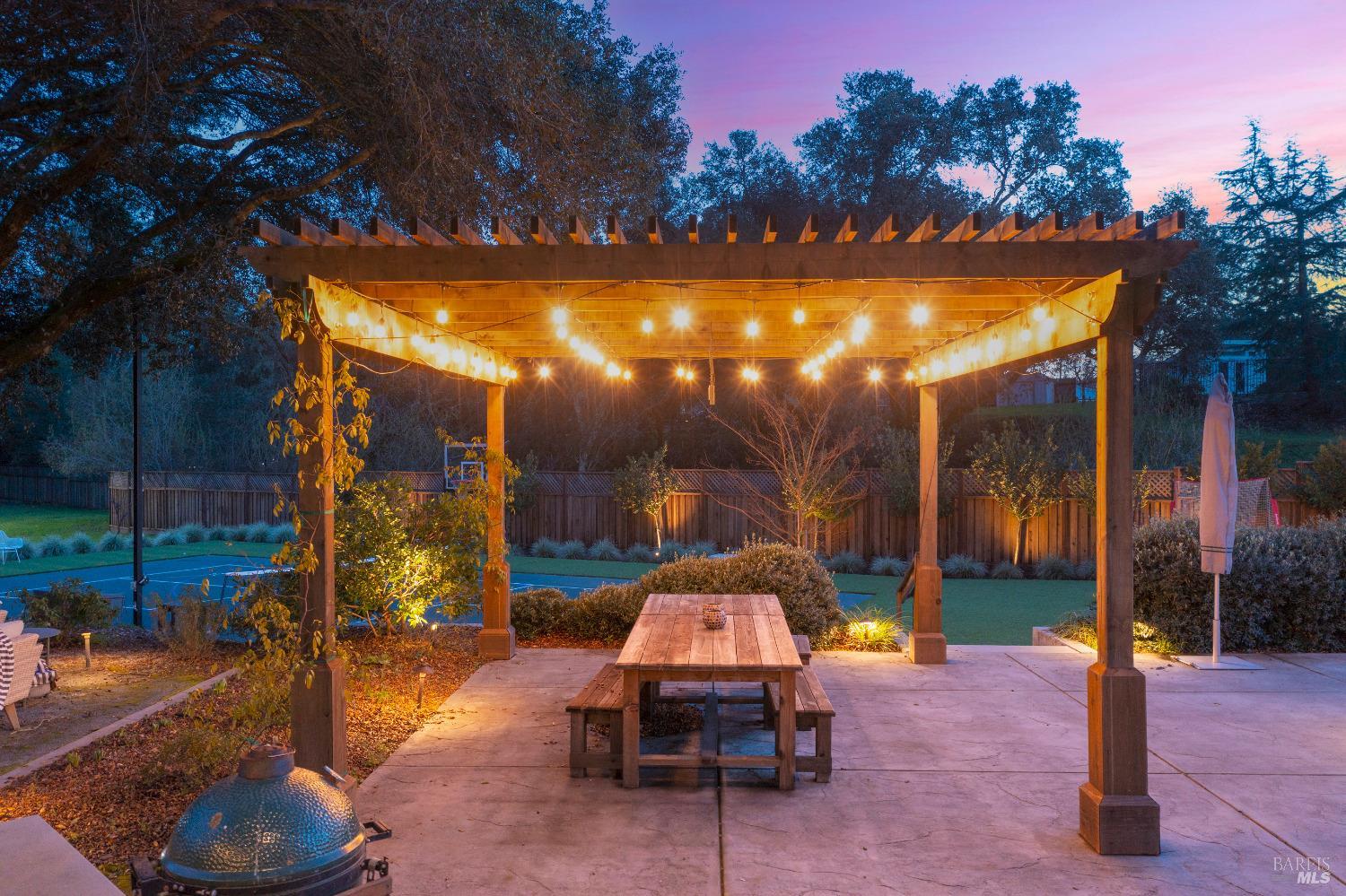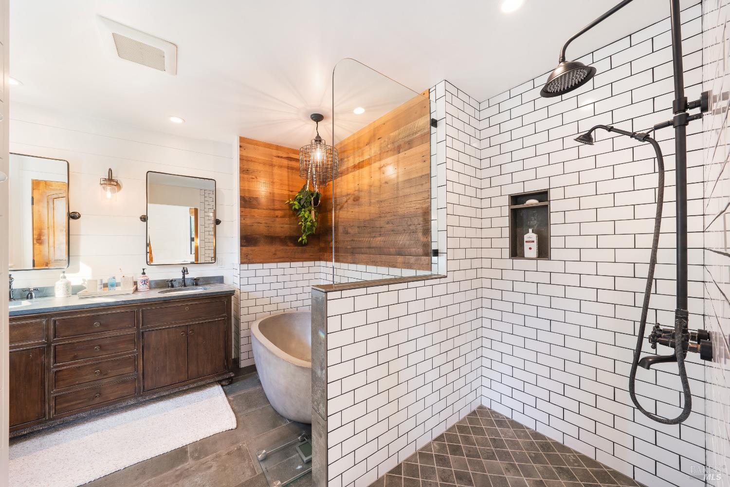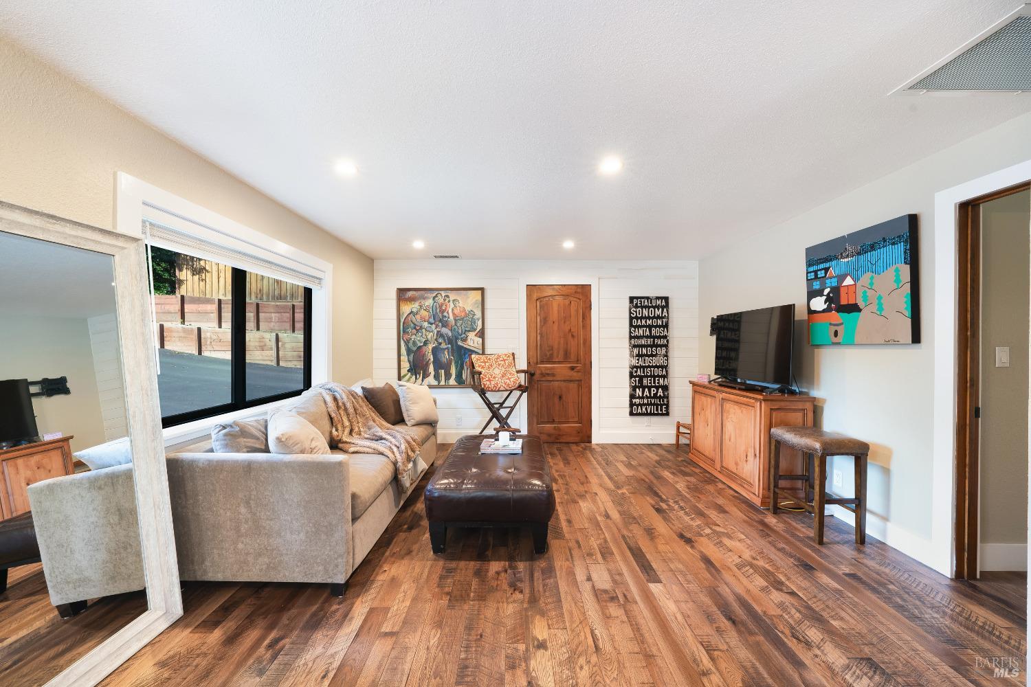 Nestled at the end of a cul-de-sac, this 1.5 +/- acres lot boasts a 3 bed/2 bath single-level farmhouse, a 1 bed/1 bath guesthouse, and a plethora of superb amenities. A comprehensive renovation in 2018 brought this once dated home up to a modern day aesthetic. The open floorplan is bathed in natural light and showcases designer accents and reclaimed barn wood floors throughout. The gourmet kitchen is a culinary enthusiast's dream, complete with Viking stainless steel appliances, quartz countertops, and a spacious center island. The backyard is the epitome of a private oasis, perfect for family gatherings. It features everything you could ever want to entertain; a pool, a hot tub, an outdoor kitchen, a cozy gas firepit, built-in surround sound, pickleball, a chicken coop, a kid's playhouse, garden beds, and a sports court. In addition to the impressive 2,400 sq ft main residence and the detached 800 sq ft guest cottage, there is generous 1,200-sq ft shop with attached covered RV parking. Ideally situated just minutes away from the Healdsburg Plaza, world-renowned wineries, fine dining establishments, and boutique shopping, this property offers the ultimate wine country living experience.