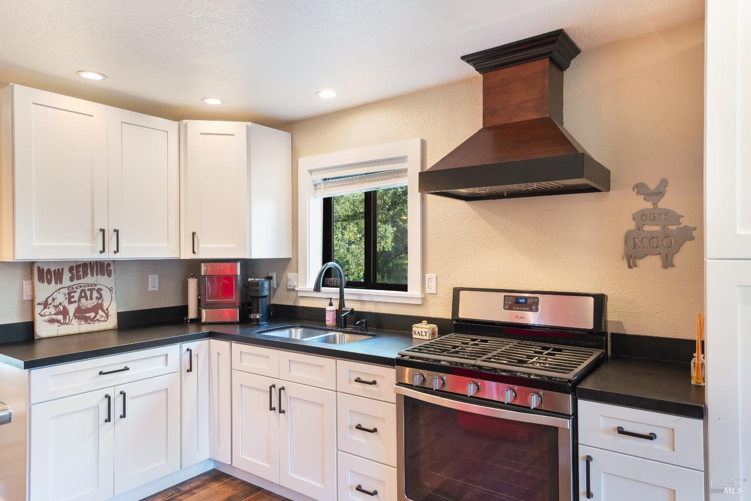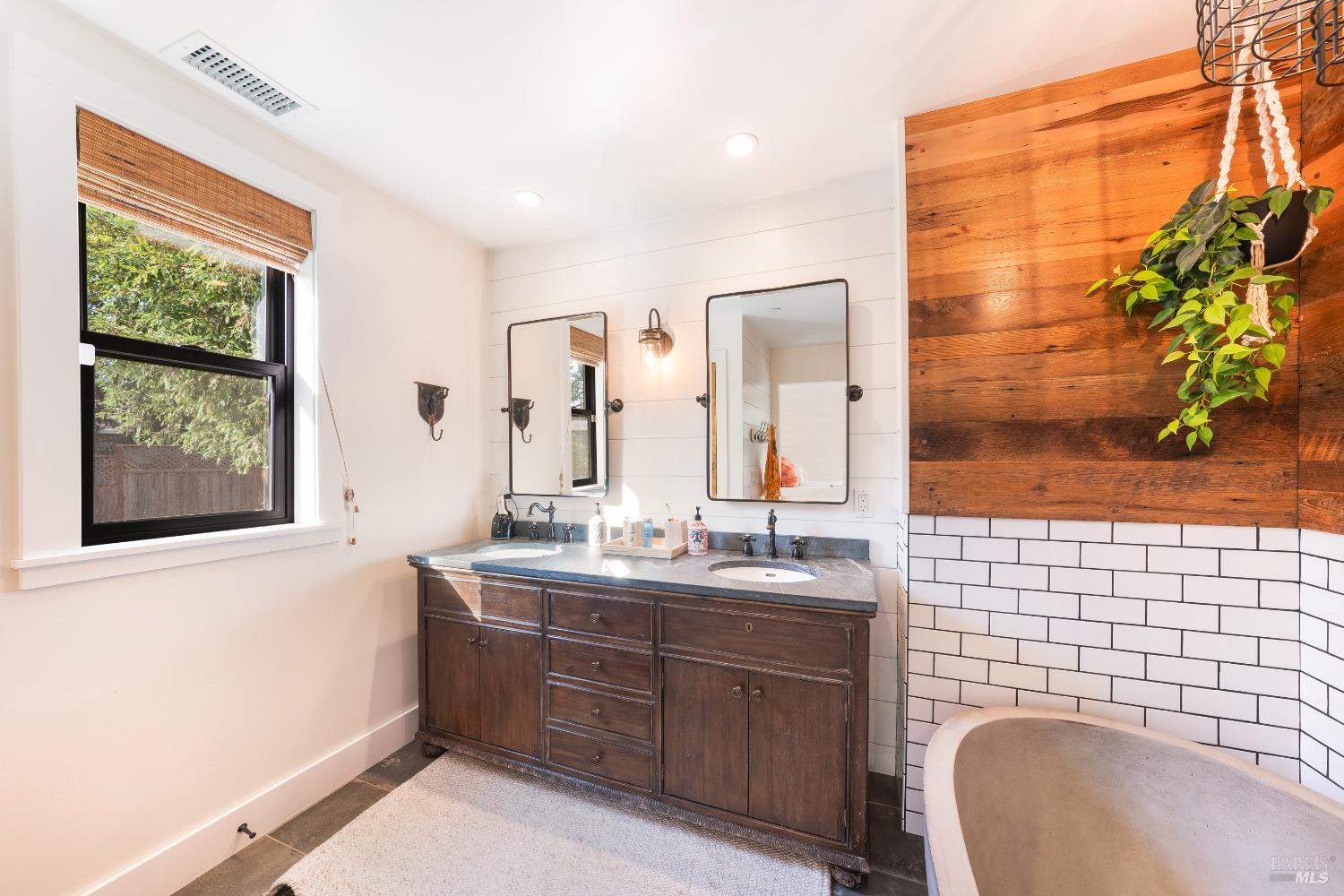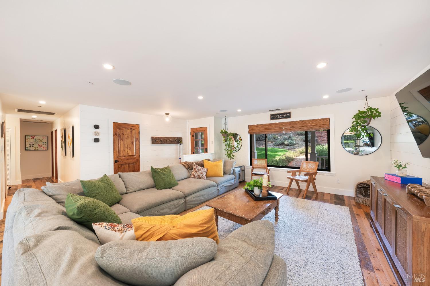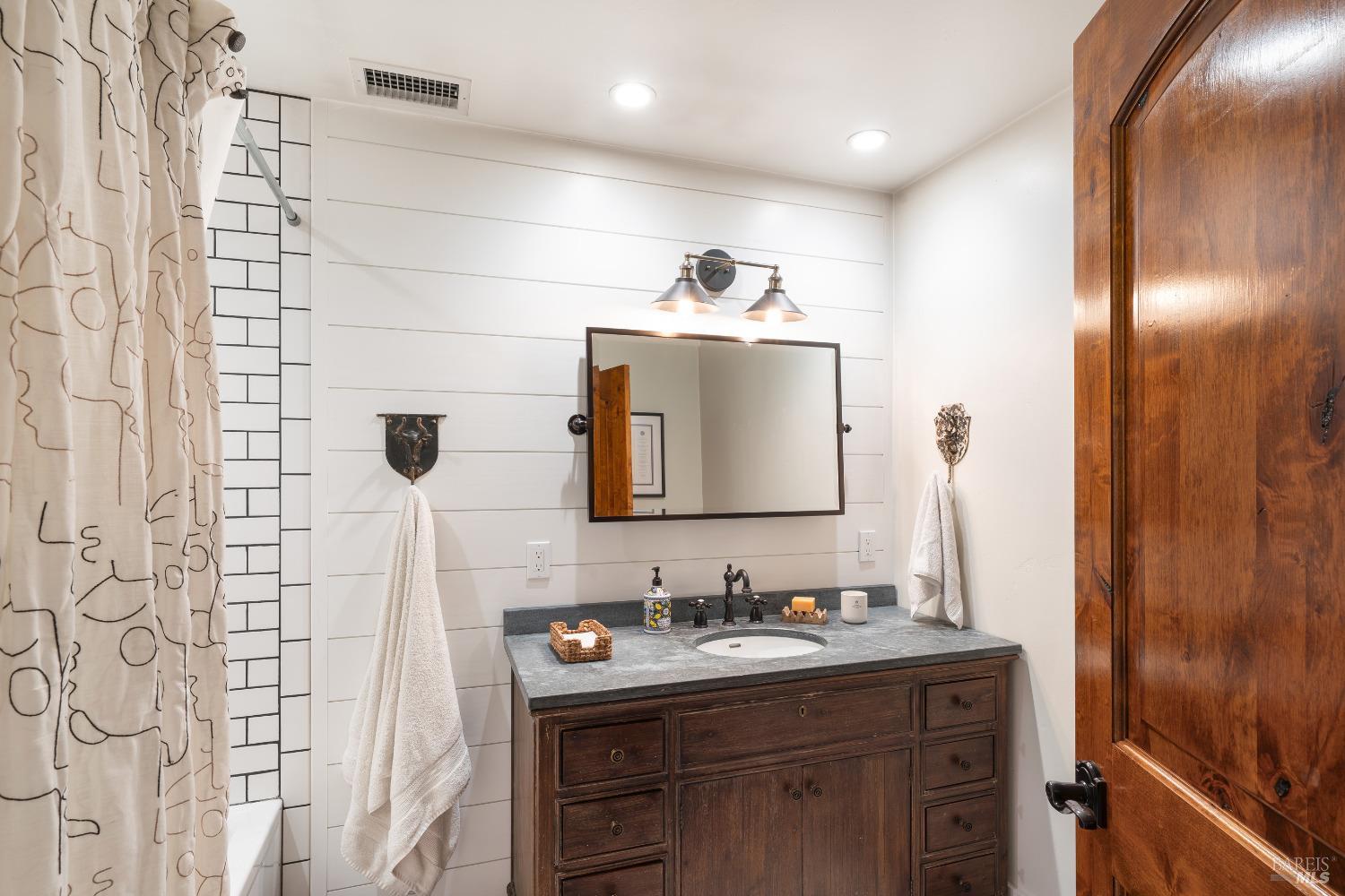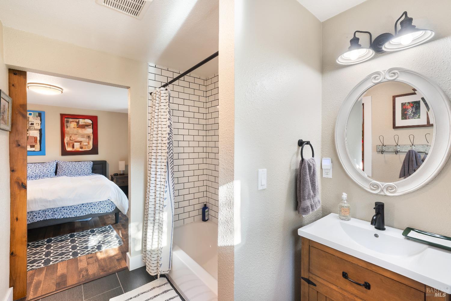 Nestled at the end of a cul-de-sac, this 1.5 +/- acres lot boasts a 3 bed/2 bath single-level farmhouse, a 1 bed/1 bath guesthouse, and a plethora of superb amenities. A comprehensive renovation in 2018 brought this once dated home up to a modern day aesthetic. The open floorplan is bathed in natural light and showcases designer accents and reclaimed barn wood floors throughout. The gourmet kitchen is a culinary enthusiast's dream, complete with Viking stainless steel appliances, quartz countertops, and a spacious center island. The backyard is the epitome of a private oasis, perfect for family gatherings. It features everything you could ever want to entertain; a pool, a hot tub, an outdoor kitchen, a cozy gas firepit, built-in surround sound, pickleball, a chicken coop, a kid's playhouse, garden beds, and a sports court. In addition to the impressive 2,400 sq ft main residence and the detached 800 sq ft guest cottage, there is generous 1,200-sq ft shop with attached covered RV parking. Ideally situated just minutes away from the Healdsburg Plaza, world-renowned wineries, fine dining establishments, and boutique shopping, this property offers the ultimate wine country living experience.