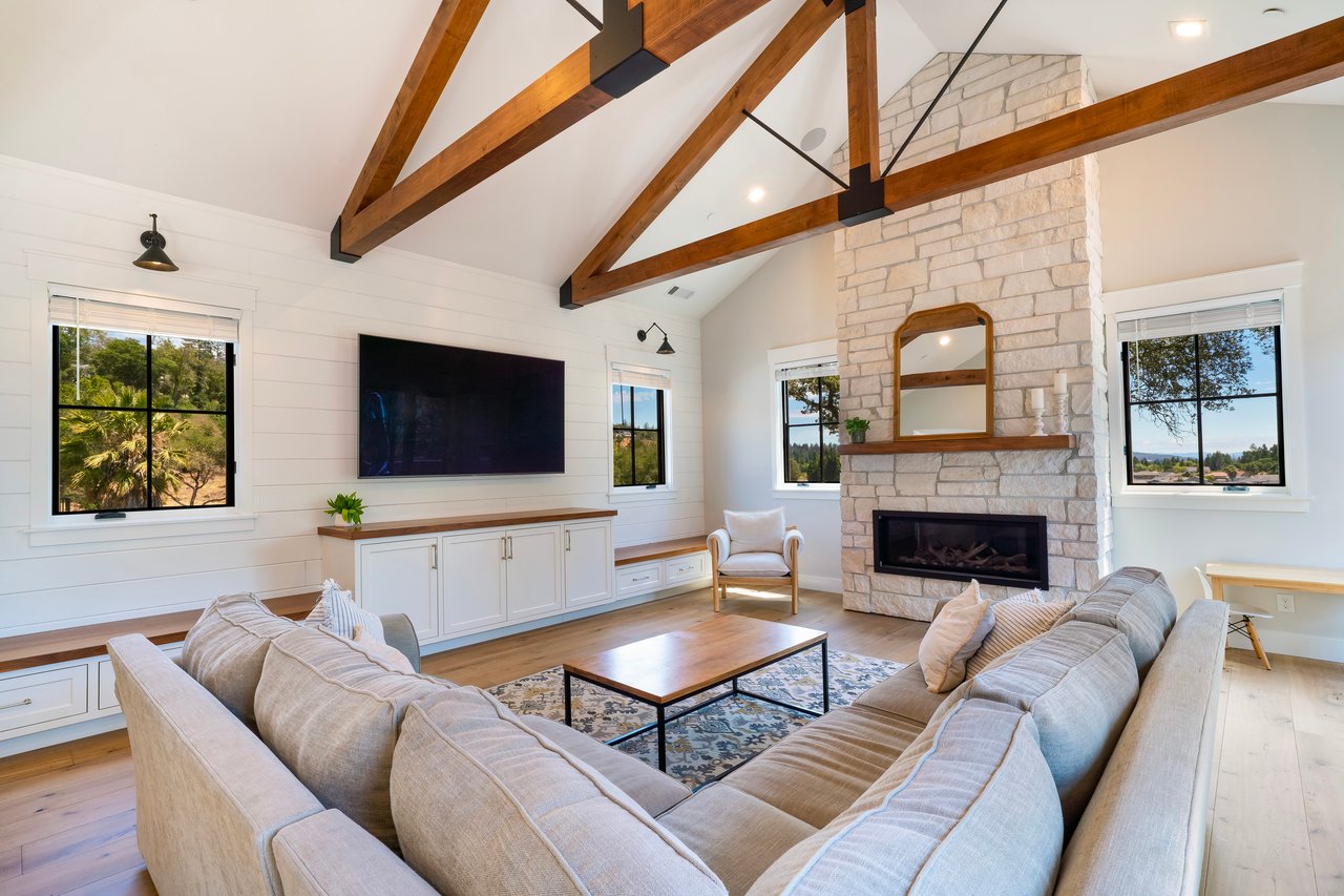 Perched in the coveted neighborhood of Fountain Grove, this exceptional Santa Rosa estate offers over 5,000 square feet of impeccably curated living spacewhere elevated architecture meets refined comfort and functionality. Vaulted ceilings and expansive bifold glass doors invite natural light and lovely views, while the open-concept floor plan lives like a single story. Flowing seamlessly through a sophisticated great room, chef's kitchen with premium appliances, and elegant dining space, it's ideal for both intimate evenings and grand-scale entertaining. The five-bedroom, four-and-a-half-bath layout with dedicated office and dual laundry rooms is designed for effortless living. The primary suite is a peaceful retreat, featuring vaulted ceilings, a spa-inspired ensuite, and serene vistas. A dedicated media room sets the stage for things like film nights and watching the game, while the three-car garage provides generous space for vehicles and storage. Outside, the terraced and landscaped backyard invites alfresco dining, gardening, or quiet relaxation beneath Sonoma's sun-drenched skies. Just minutes from world-class wineries, golf, and outdoor recreation, this rare offering blends space, style, and sophistication in the heart of Wine Country.