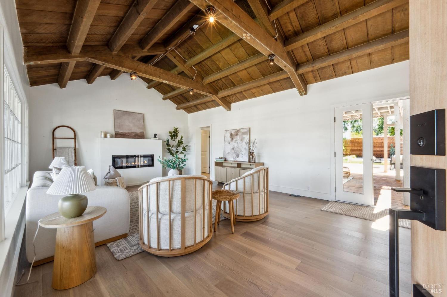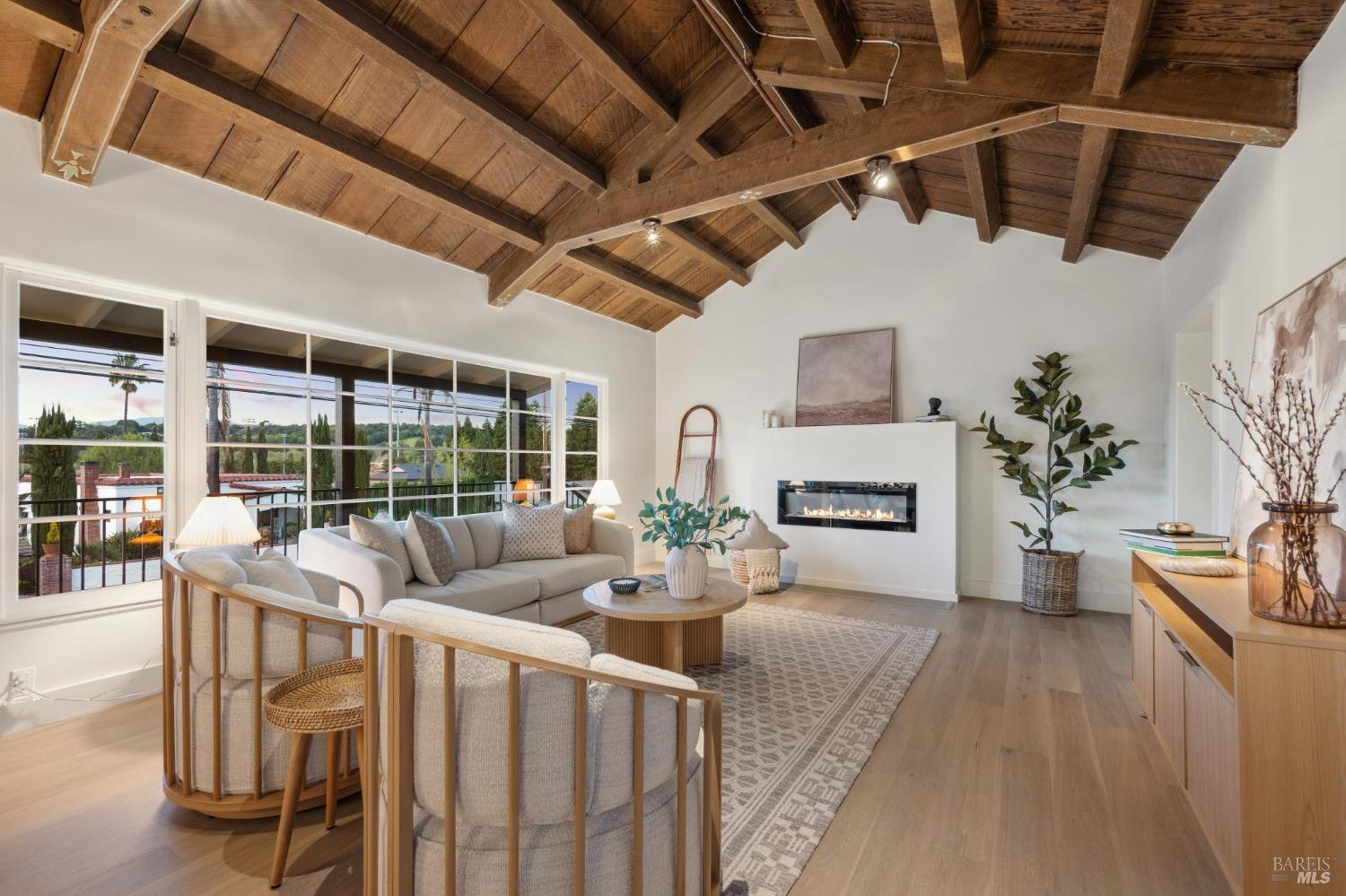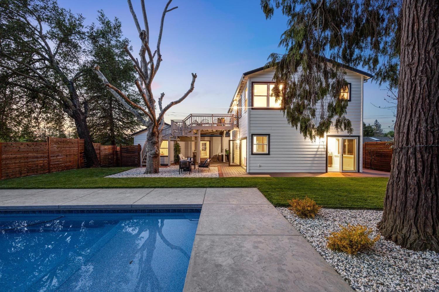 Perched on a gentle knoll with mountain views, this fully remodeled 5 bed/4 bath home offers the perfect blend of vintage charm and modern style just under a mile from Healdsburg's historic Plaza. Thoughtfully updated throughout, the home features a warm, modern aesthetic with preserved architectural details, a sleek chef's kitchen, and updated bathrooms. The spacious layout offers flexibility for entertaining, working from home, or hosting guests. Step outside to your private backyard oasis with a brand-new in-ground pool, mature landscaping, and an upper deck ideal for sunset lounging or firework viewing. Enjoy the best of Sonoma County living in this turnkey property combining timeless character, luxury upgrades, and an unbeatable location.