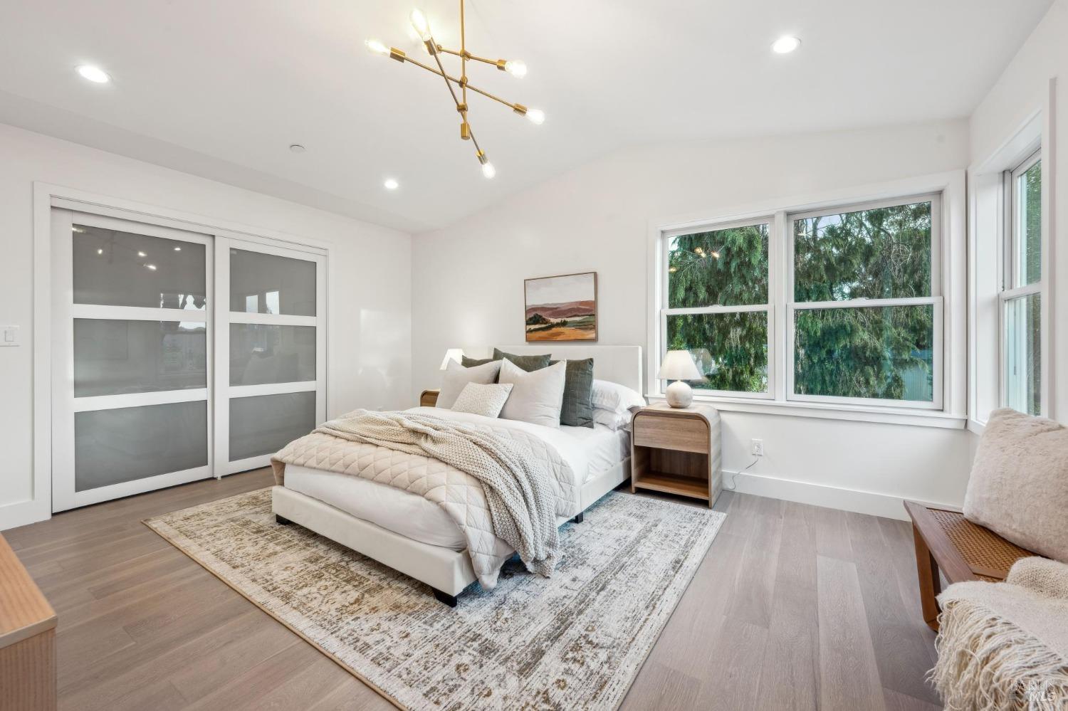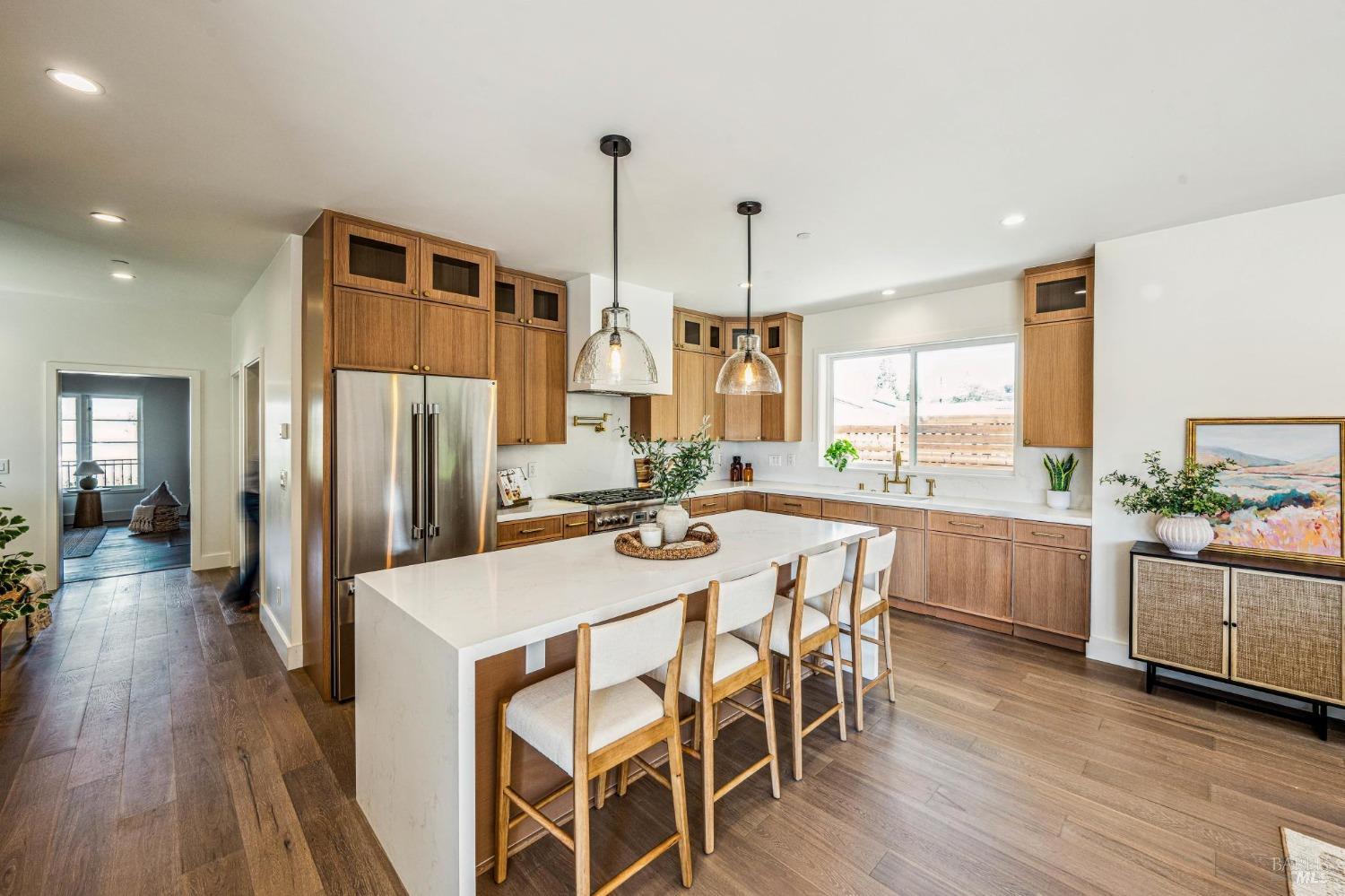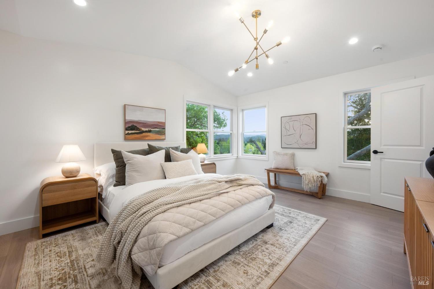 Perched on a gentle knoll with mountain views, this fully remodeled 5 bed/4 bath home offers the perfect blend of vintage charm and modern style just under a mile from Healdsburg's historic Plaza. Thoughtfully updated throughout, the home features a warm, modern aesthetic with preserved architectural details, a sleek chef's kitchen, and updated bathrooms. The spacious layout offers flexibility for entertaining, working from home, or hosting guests. Step outside to your private backyard oasis with a brand-new in-ground pool, mature landscaping, and an upper deck ideal for sunset lounging or firework viewing. Enjoy the best of Sonoma County living in this turnkey property combining timeless character, luxury upgrades, and an unbeatable location.