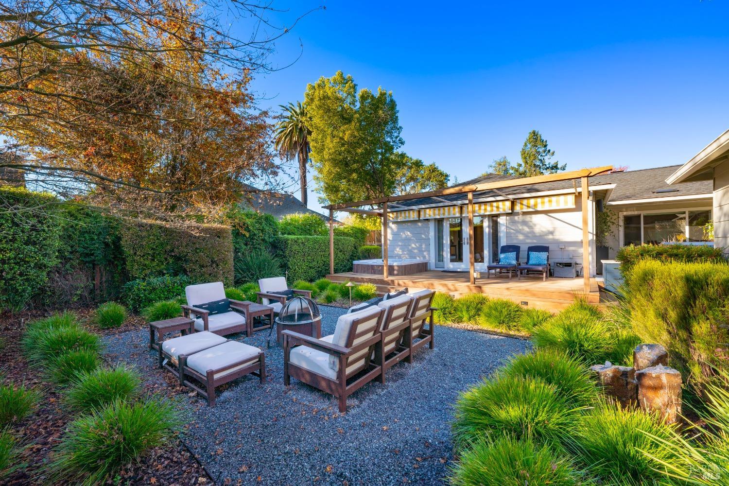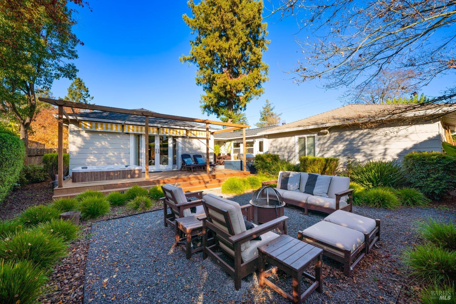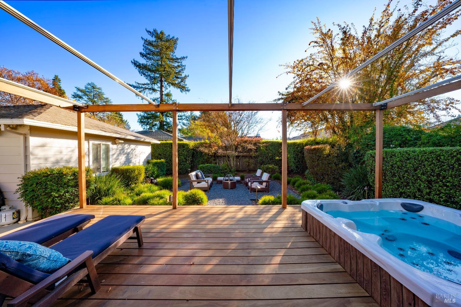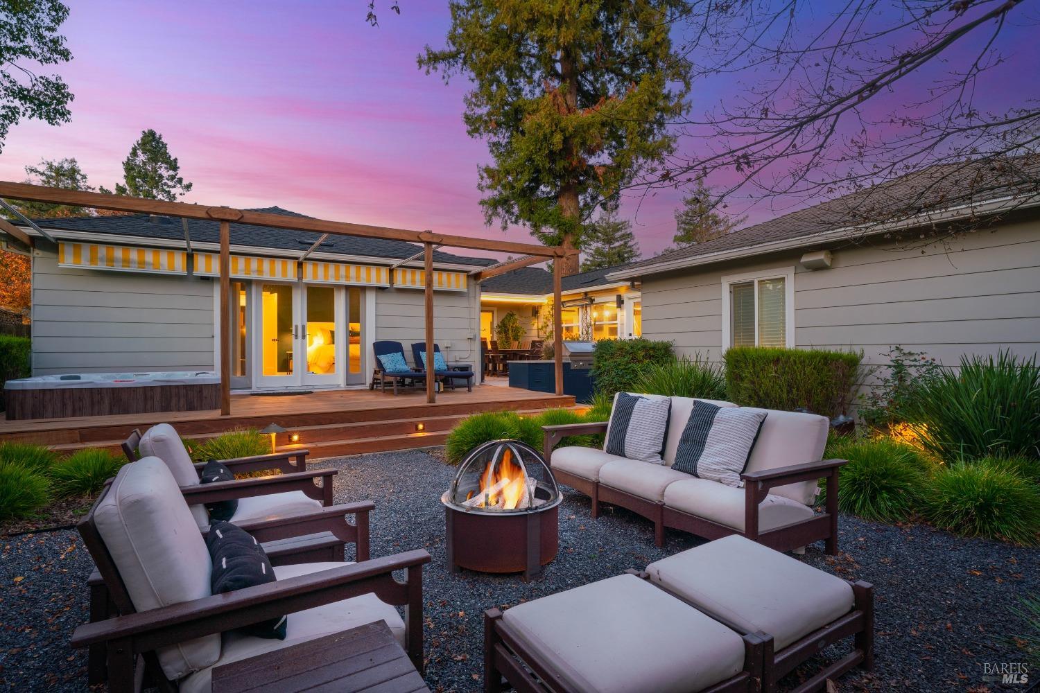 Welcome to 526 Tucker Street, right in the heart of picturesque Healdsburg. This contemporary 2-bedroom, 2.5-bathroom residence offers a thoughtfully designed interior, perfect for those seeking a blend of comfort and sophistication. As you step inside, you'll be greeted by a raised ceiling and an abundance of natural light streaming through the large windows and illuminating the French Oak floors and modern finishes. The gracious floor plan includes a welcoming living room with a cozy fireplace, ideal for cozy evenings at home. Adjacent to the living area is a spacious dining room that flows seamlessly into the kitchen; a chef's dream, featuring stainless steel appliances and sleek slab counters. The primary suite is a true retreat, boasting French doors that open to a private Ipe deck and hot tub, offering a serene space to unwind. This single level home is situated on a generous corner lot on one of Healdsburg most desirable streets and provides ample outdoor space for gardening or leisure activities amidst the beautiful landscape lighting. Experience the perfect blend of modern living and timeless charm at 526 Tucker Street.