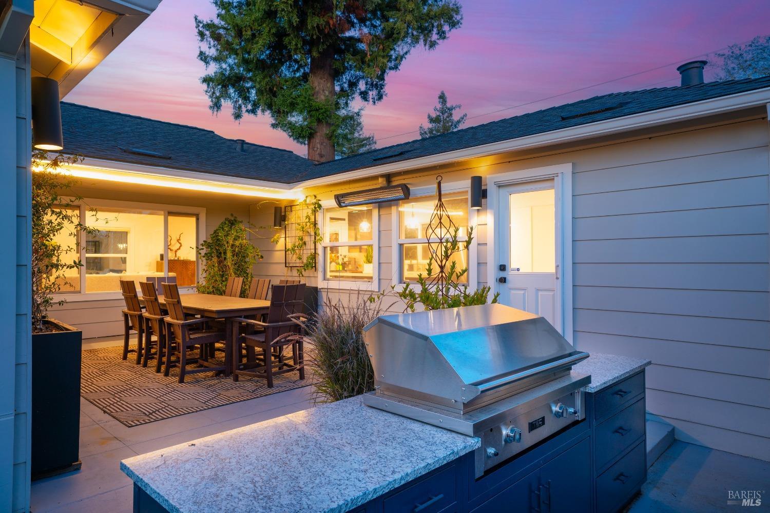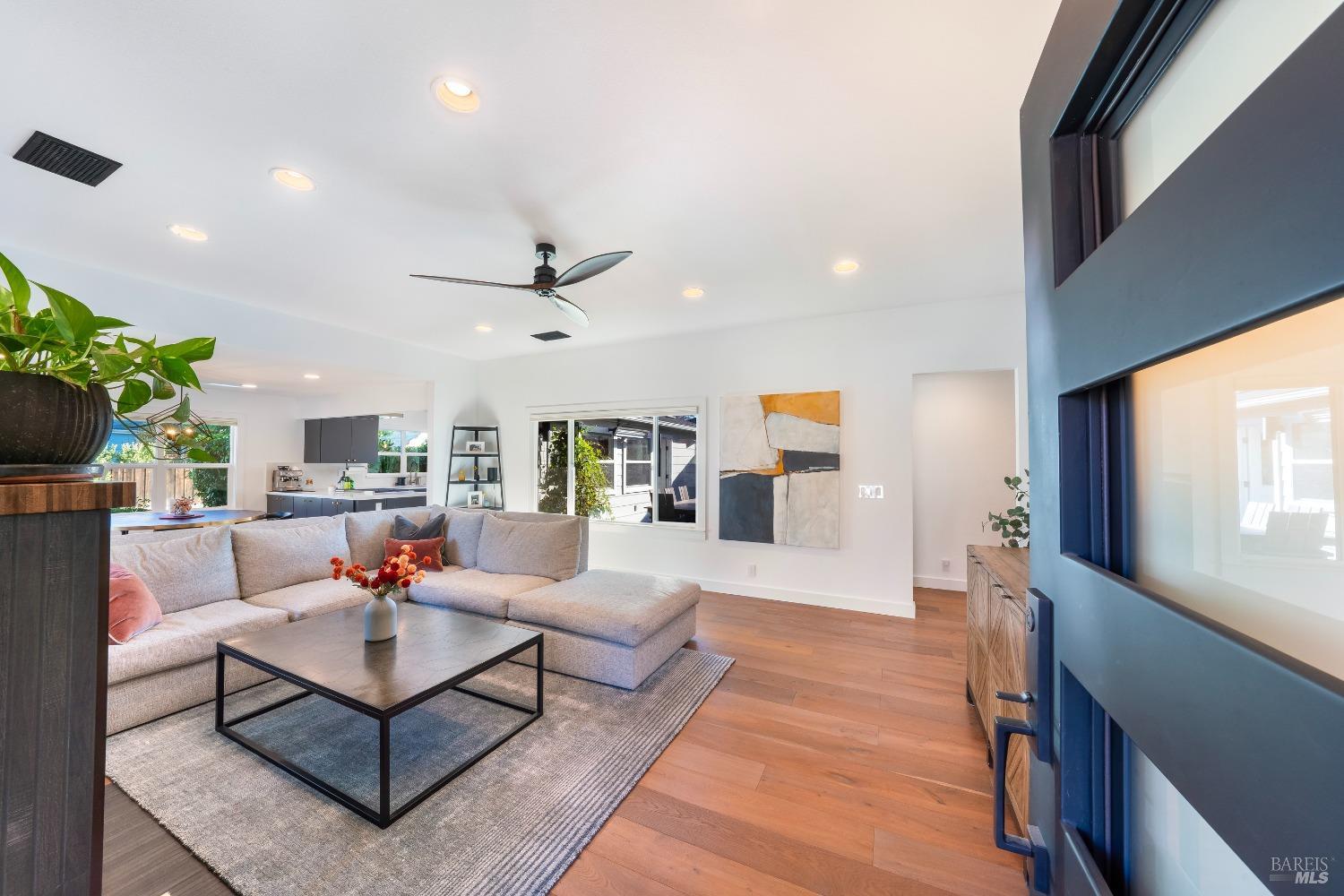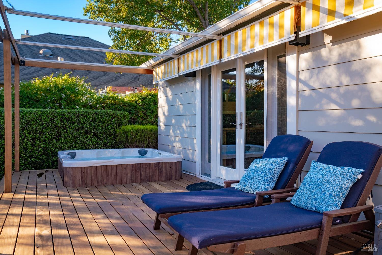 Welcome to 526 Tucker Street, right in the heart of picturesque Healdsburg. This contemporary 2-bedroom, 2.5-bathroom residence offers a thoughtfully designed interior, perfect for those seeking a blend of comfort and sophistication. As you step inside, you'll be greeted by a raised ceiling and an abundance of natural light streaming through the large windows and illuminating the French Oak floors and modern finishes. The gracious floor plan includes a welcoming living room with a cozy fireplace, ideal for cozy evenings at home. Adjacent to the living area is a spacious dining room that flows seamlessly into the kitchen; a chef's dream, featuring stainless steel appliances and sleek slab counters. The primary suite is a true retreat, boasting French doors that open to a private Ipe deck and hot tub, offering a serene space to unwind. This single level home is situated on a generous corner lot on one of Healdsburg most desirable streets and provides ample outdoor space for gardening or leisure activities amidst the beautiful landscape lighting. Experience the perfect blend of modern living and timeless charm at 526 Tucker Street.