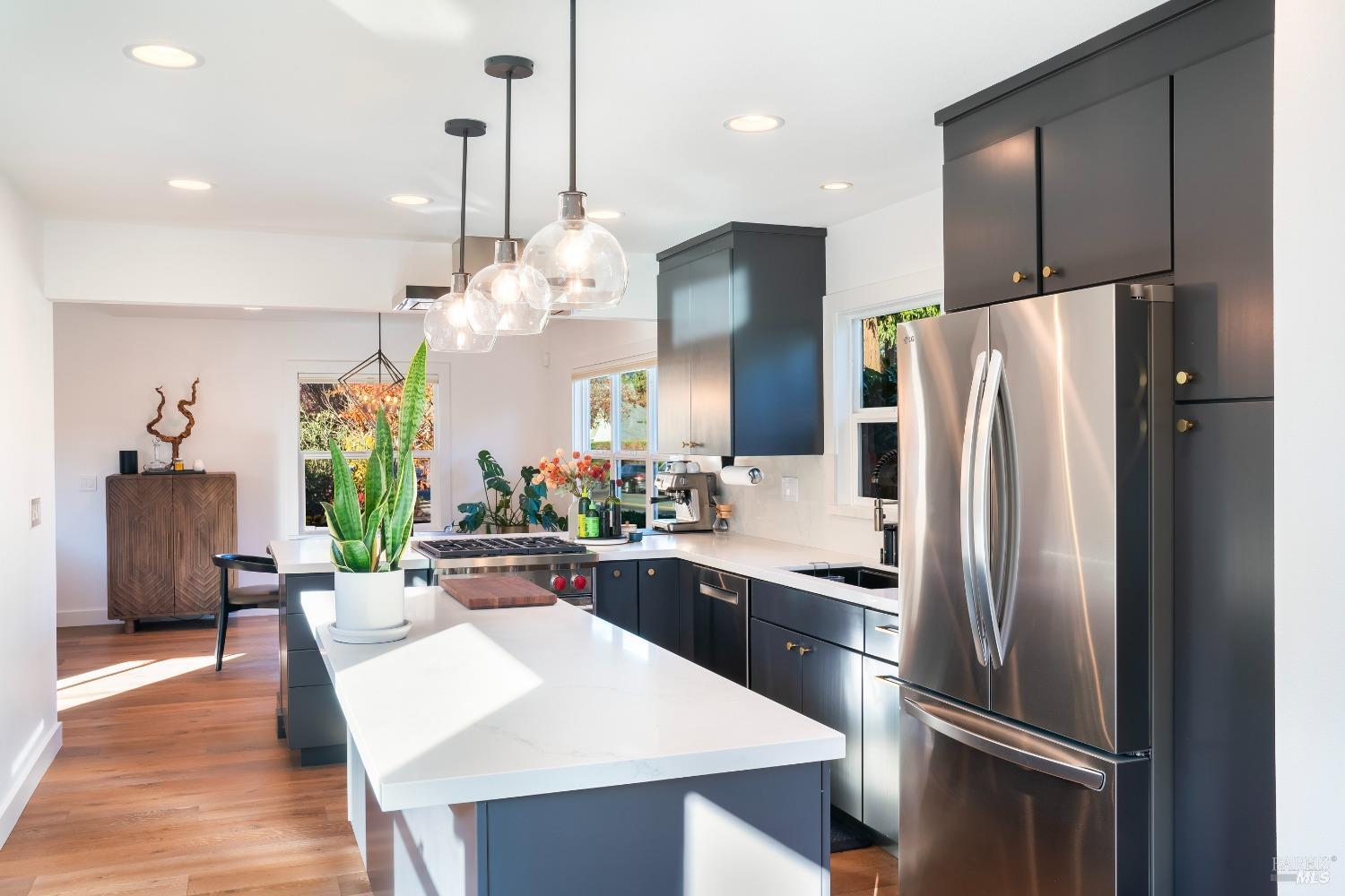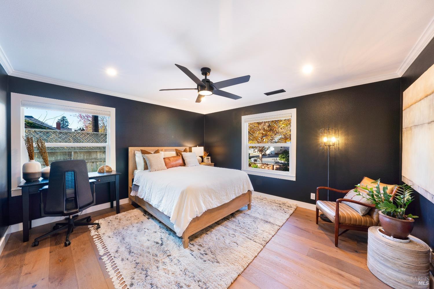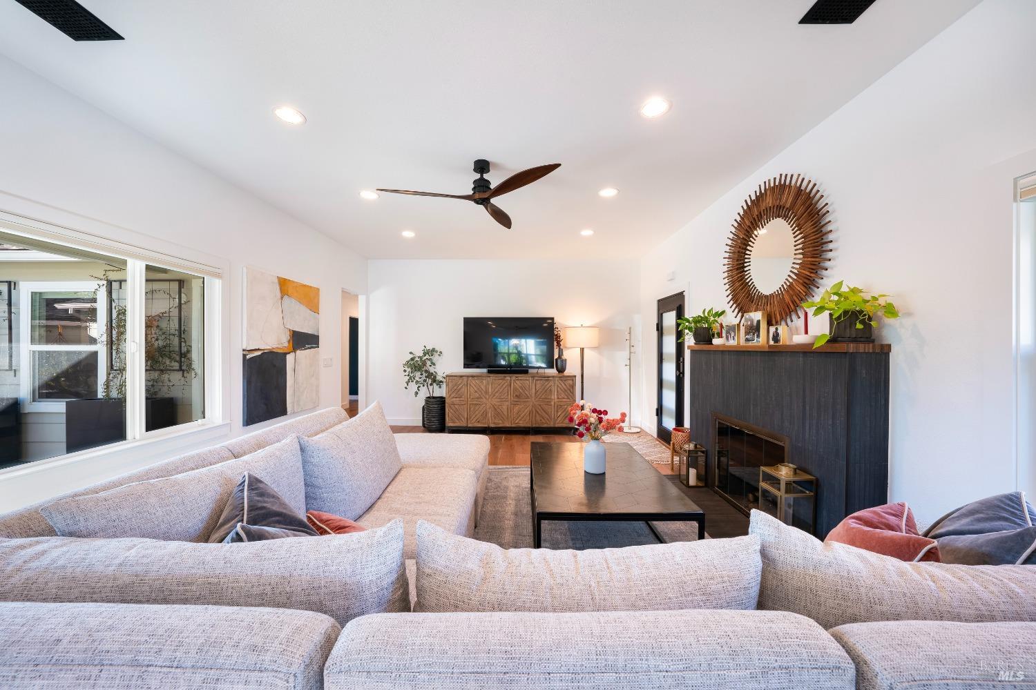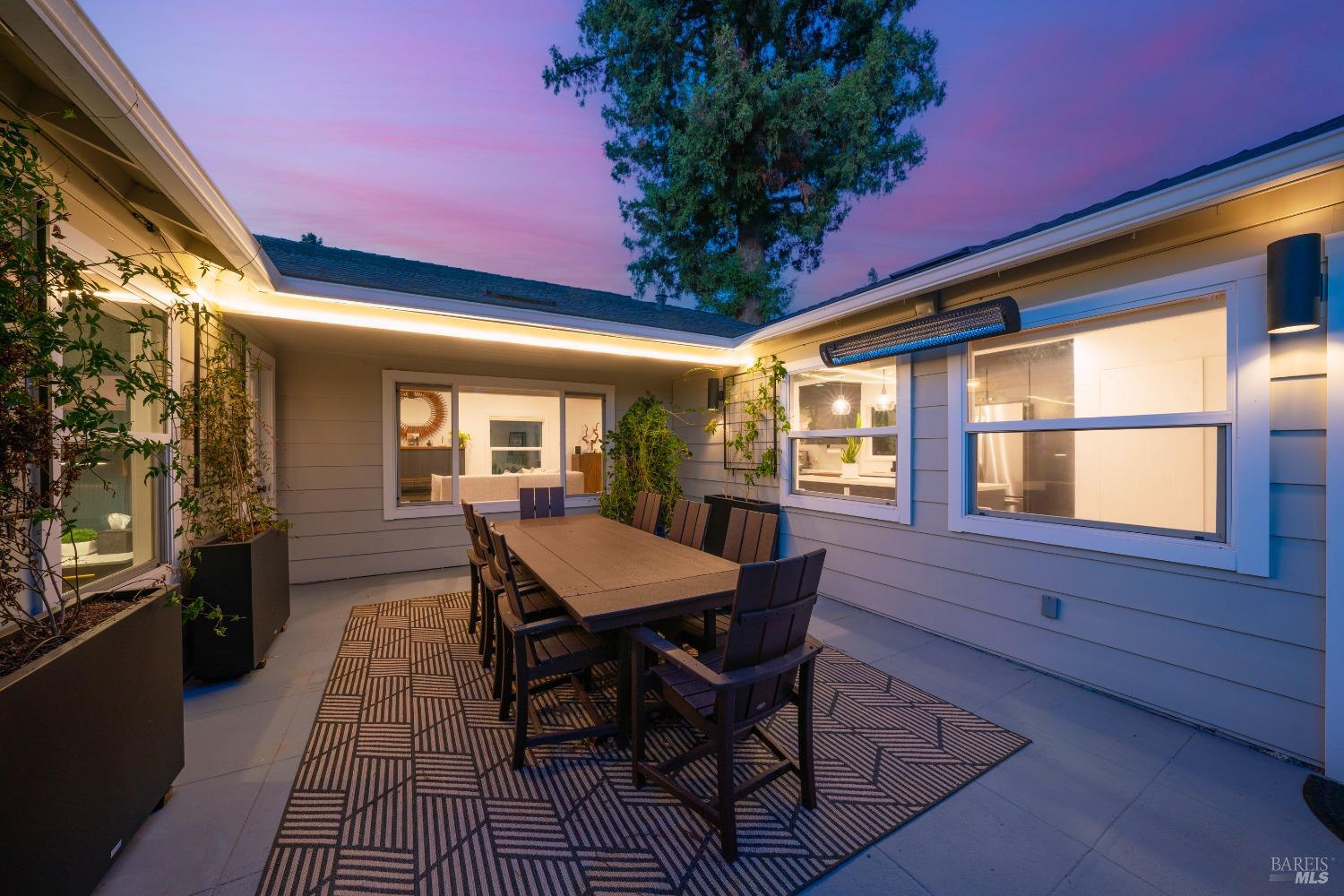 Welcome to 526 Tucker Street, right in the heart of picturesque Healdsburg. This contemporary 2-bedroom, 2.5-bathroom residence offers a thoughtfully designed interior, perfect for those seeking a blend of comfort and sophistication. As you step inside, you'll be greeted by a raised ceiling and an abundance of natural light streaming through the large windows and illuminating the French Oak floors and modern finishes. The gracious floor plan includes a welcoming living room with a cozy fireplace, ideal for cozy evenings at home. Adjacent to the living area is a spacious dining room that flows seamlessly into the kitchen; a chef's dream, featuring stainless steel appliances and sleek slab counters. The primary suite is a true retreat, boasting French doors that open to a private Ipe deck and hot tub, offering a serene space to unwind. This single level home is situated on a generous corner lot on one of Healdsburg most desirable streets and provides ample outdoor space for gardening or leisure activities amidst the beautiful landscape lighting. Experience the perfect blend of modern living and timeless charm at 526 Tucker Street.