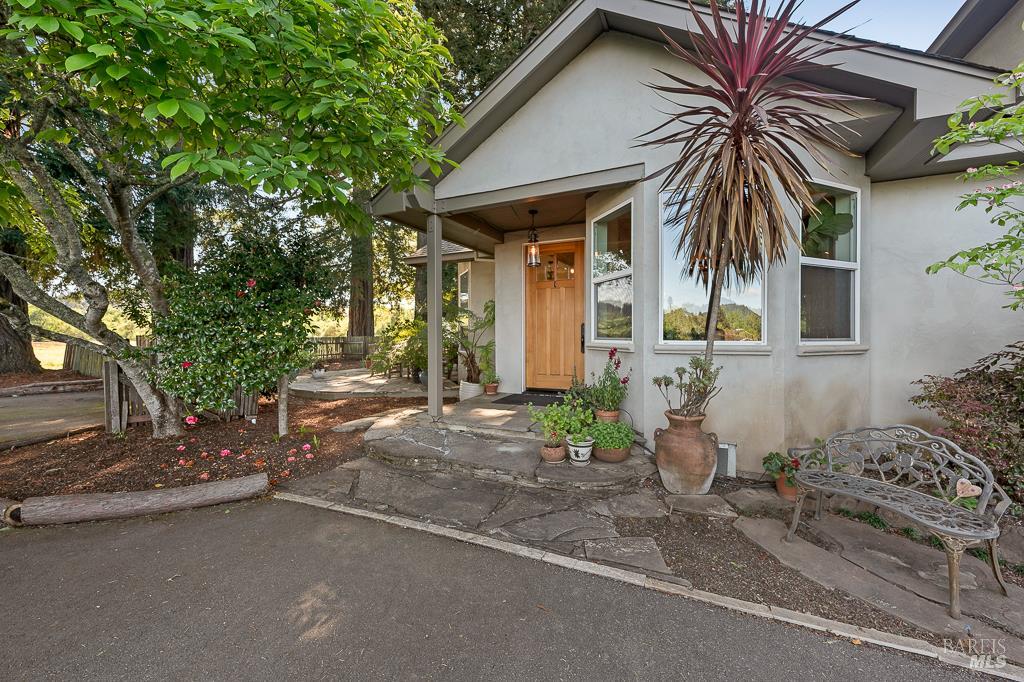 Set on nearly half an acre in the heart of Healdsburg's coveted Dry Creek valley floor, this warm and inviting 3-bedroom, 3-bathroom retreat offers a lifestyle rooted in beauty, comfort, and connection to the land. Surrounded by neighboring vineyards, framed by majestic mountain views, and kissed by mature redwoods, the property feels like a private sanctuary while remaining just minutes from the charm of downtown. Life here unfolds outdoors as much as it does inside. Multiple patios create distinct spaces for gathering, dining, and unwinding, while a wood-fired oven and artful bocce court invite long, laughter-filled evenings. Garden beds and abundant fruit trees offer a farm-to-table experience right at home, and the peaceful setting is accompanied by birdsong, rustling leaves, and breathtaking sunrises and sunsets that paint the sky daily. Inside, the fully remodeled residence blends thoughtful design with effortless indoor-outdoor flow. The main living space is both striking and welcoming, featuring vaulted ceilings, a stunning rock fireplace, and seamless connection to the kitchen, perfect for entertaining or enjoying quiet nights in. Natural materials and textures ground the home in its surroundings, creating a sense of authenticity and calm. A detached workshop and garden shed provide exciting potential for a guest space, studio, or creative retreat, adding flexibility to this already special property. Whether hosting lively gatherings, tending the garden, or simply soaking in the serenity, this is a place to slow down, savor, and truly feel at home. Warm, unique, and beautifully built, this is Healdsburg living at its finest.